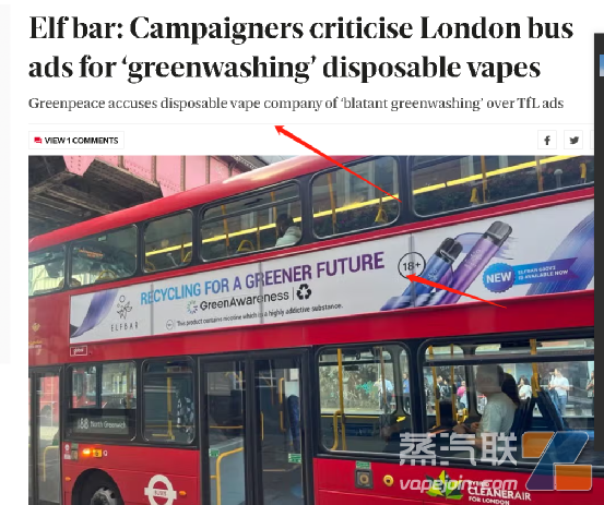 伦敦公交车所见ELF BAR!核心提示:8月20日消息,近日一次性电子烟零售商 Elf Bar 的“绿色意识”广告出现在伦敦公交车上,呼吁消费者“回收利用,创造更绿色的未来