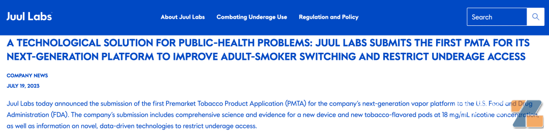 Juul再次冲击PMTA,可通过App验证年龄核心提示:Juul官网于7月19日发布的一则消息显示,Juul Labs宣布已经为其下一代平台向FDA提交了PMTA申请。申请中除了包含关于新设备,以及