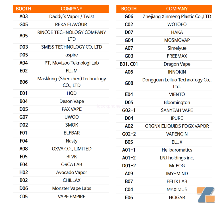 韩国电子烟也这么多厂商参加电子烟展会?核心提示:全球情报获悉,2023年韩国首尔电子烟展会(Vape Korea Expo 2023)即将7月21日至23日开始,不乏中国HQD、ELFBAR、SMOK、GEEKVAPE