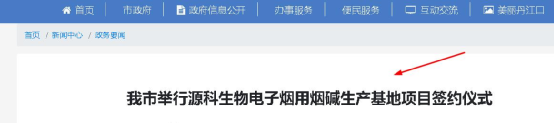 今年湖北电子烟用烟碱生产基地项目签约!核心提示:7月9日消息,今年,湖北丹江口市与湖北源科生物医药科技有限公司在汉江国际大酒店举行源科生物电子烟用烟碱生产基地项目签约仪式