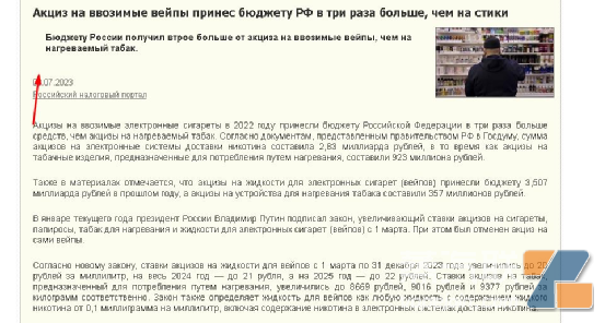 俄罗斯2022年电子烟进口税收为加热烟草三倍!核心提示:7月10日消息,近日数据,2022年度,俄罗斯电子烟设备进口税总额达28.3亿卢布,电子烟烟油进口税为35.07亿卢布;而加热烟草设备达